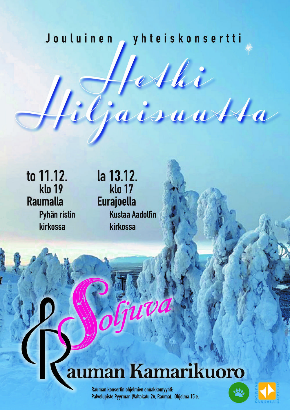 Rauman konsertin ohjelmien ennakkomyynti Palvelupiste Pyyrmanista, Valtakatu 2A, Rauma sekä kuorolaisilta.